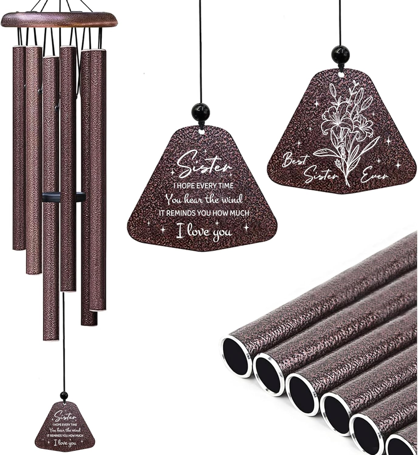 - Meaningful Gifts for Sisters: The wind chimes are engraved with words of your sisters: "Sister, I hope every time you hear the wind, it reminds you how much I love you." I hope that the person who receives this wind chime gift will feel your love for her from the words on the wind chime and recall the wonderful times you spent together