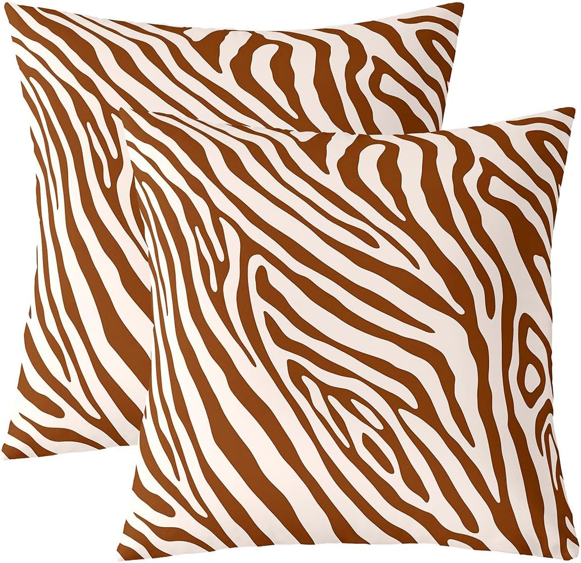 Brown Zebra Print Throw Pillow Covers 20x20 Inch Set of 2 Wild Animal Skin Stripes Decorative Pillow Cases for Kids Teens Adults Western Rustic Style Cushion Covers for Living Room Couch