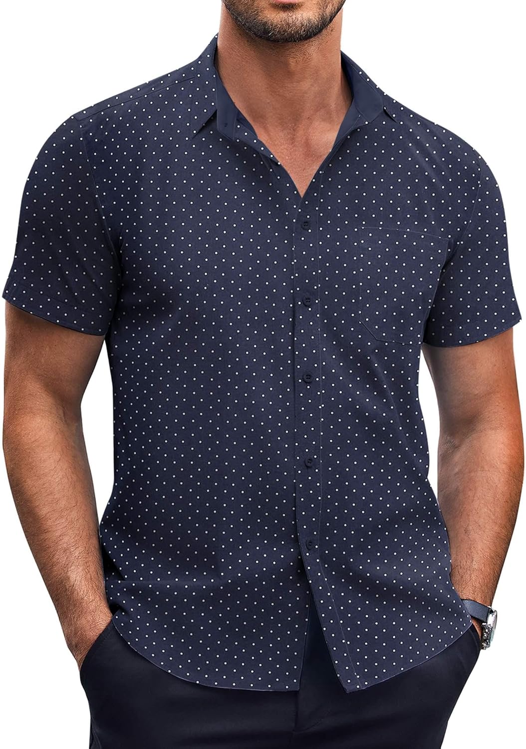 COOFANDY Mens Short Sleeve Button Down Shirts Wrinkle Free Dress Shirts Casual Polka Dot Print Shirt with Pocket