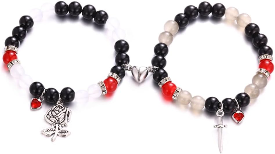 Cross Matching Bracelets for Couple Women Men Vintage Crucifix Heart Stone Bracelet Pink Green Beads Bracelets Friendship Relationship Promise Bracelet for Best Friends Trendy Jewelry Gifts