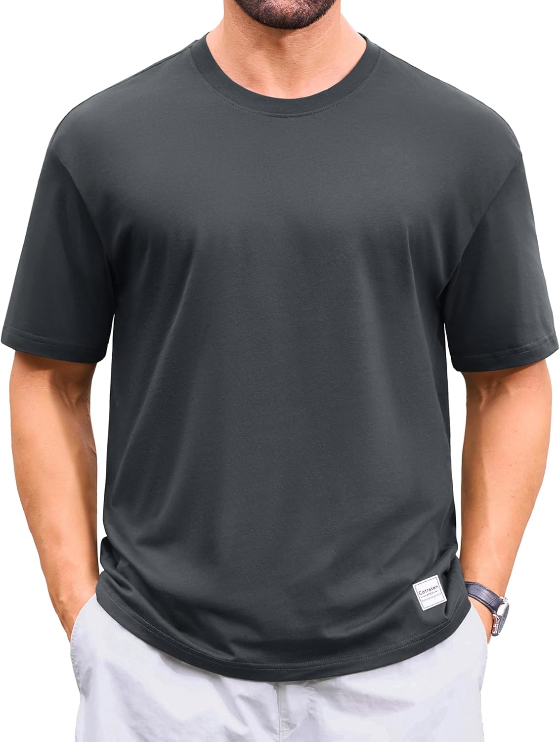 Cotrasen Men's Ultra Soft Cotton T-Shirts Short Sleeve Basic Crew Neck Casual Drop Shoulder Tee Shirt Dark Gray