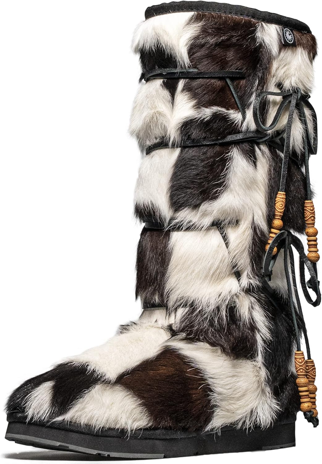 AU&MU Aumu Womens Comfort Suede Fur Shearling Stylish Knee High Winter Snow Boots Women Sheepskin