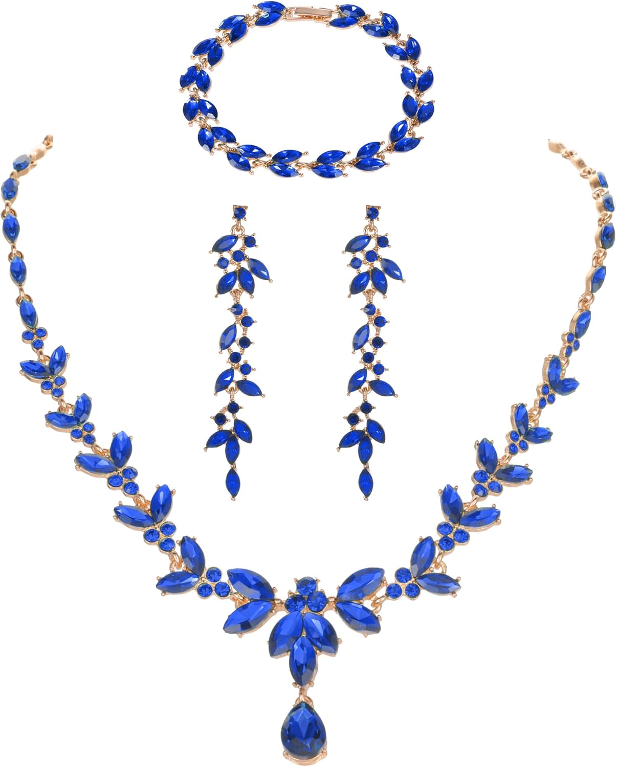 Kamirola Bridal Wedding Jewelry Set for Women/Brides/Bridesmaids Crystal Jewelry Set for Wedding Prom Party Bridal Crystal Necklace Earrings Bracelet Set