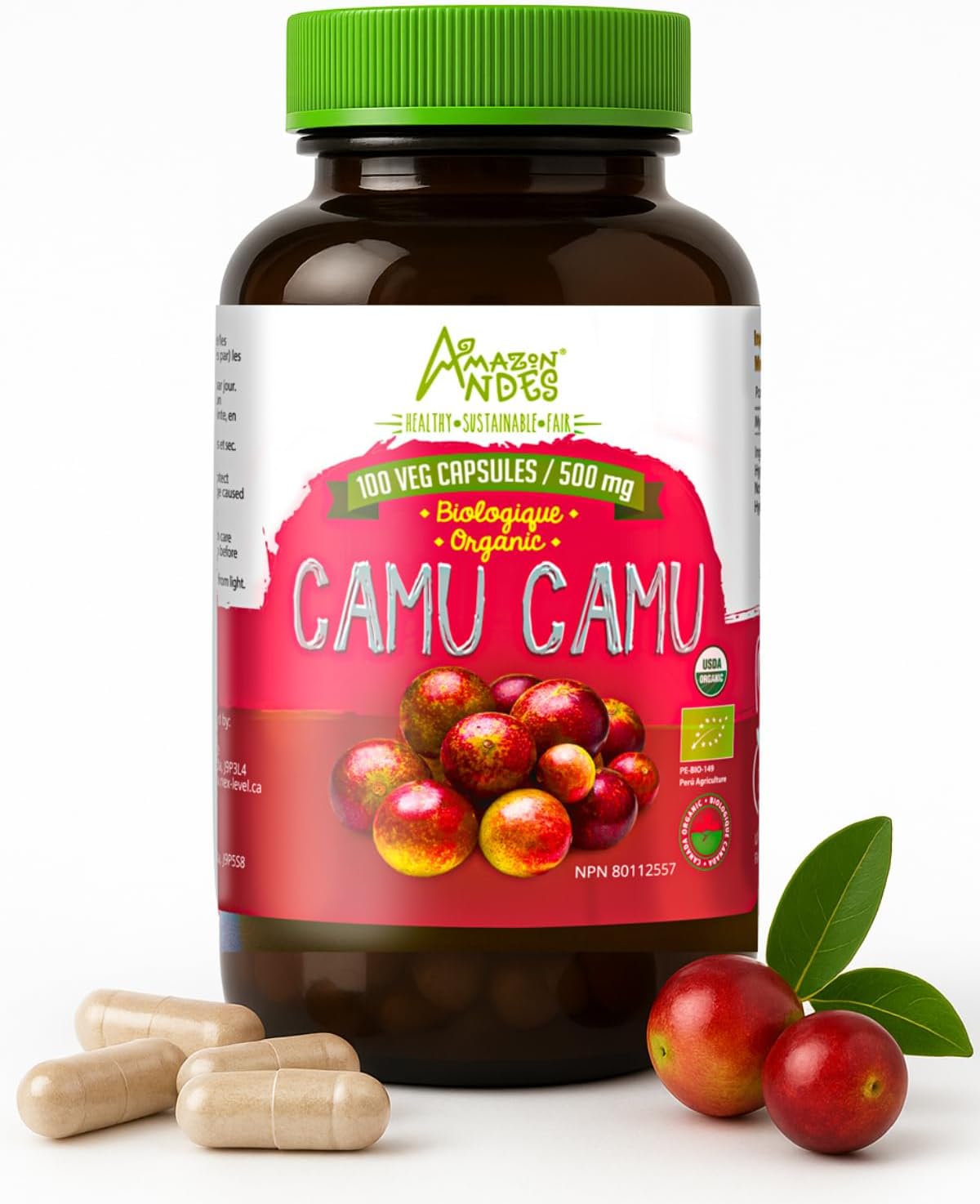 Amazon Andes Camu Camu Capsules 500mg - Pure Vitamin C Origin from Peru - Myrciaria Dubia Berry - 100 Vegetarian Caps - Wild Harvested Amazon Rainforest Superfruit Non-GMO Vegan