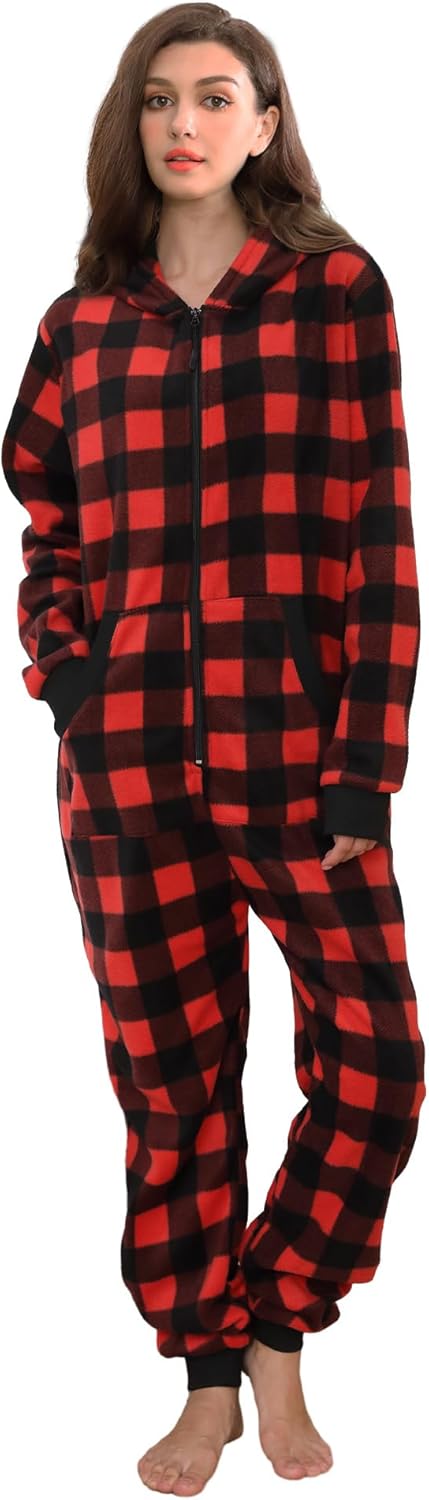 Dodheah Unisex Adult Onesie Women Men Pajamas Zipper Jumpsuit Hooded One Piece Sleepwear Family Christmas Costume