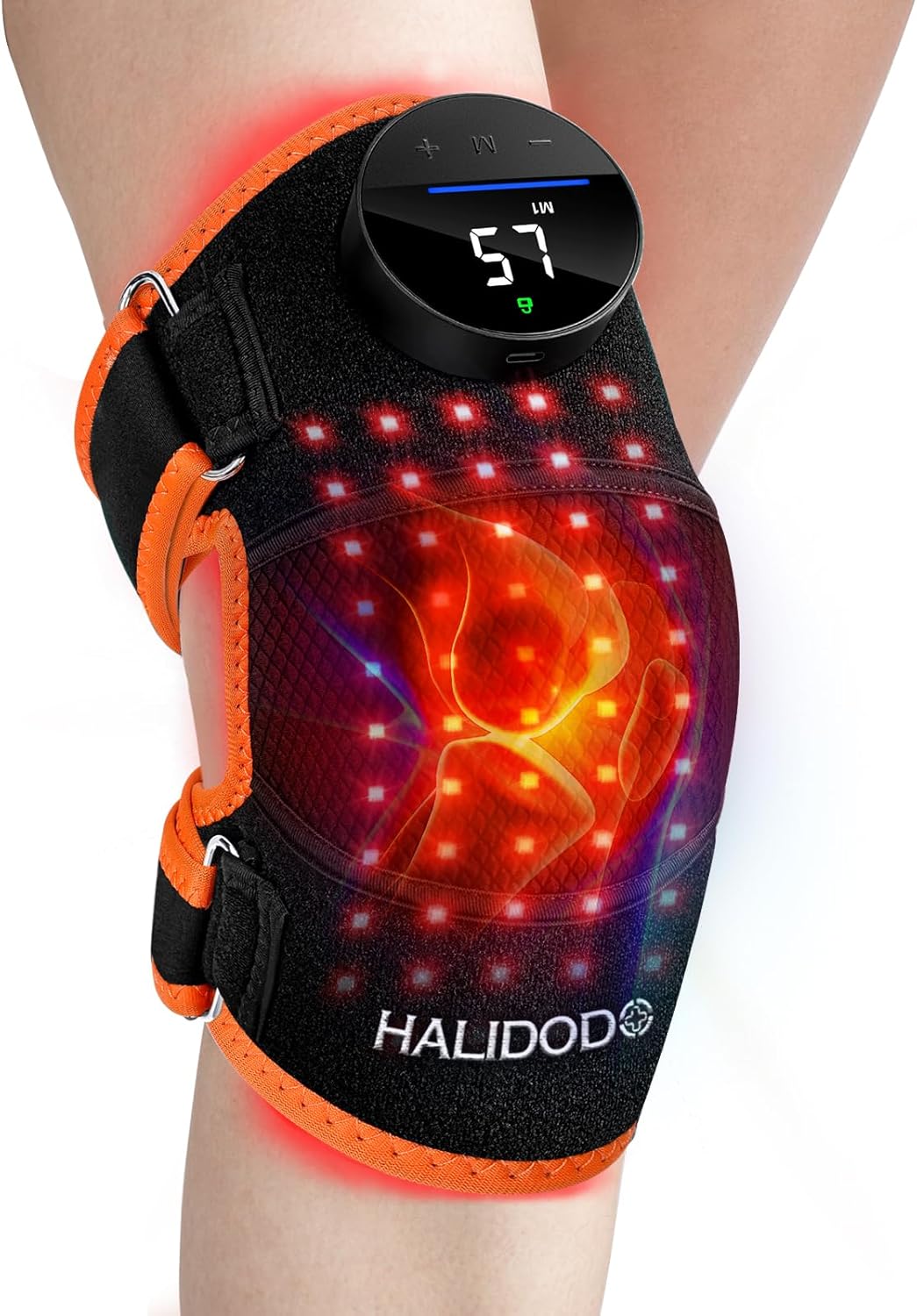 HALIDODO Red Light Therapy Knee Brace, Knee Massager with 4 Vibration Areas, Rechargeable Controller, 660nm & 850nm Red Light Therapy Heated Device for Knee/Joint/Elbow/Shoulder