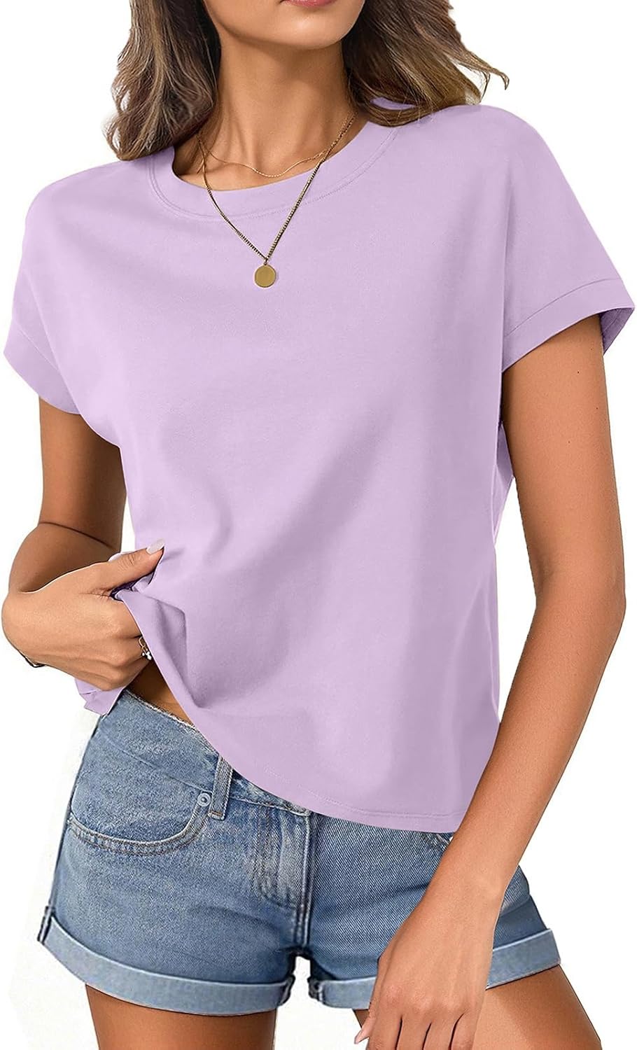 Womens Cap Sleeve Tops T Shirts Boxy Cropped Tee Loose Fit Cotton Crewneck Short Sleeves Casual Summer Fashion Blouse