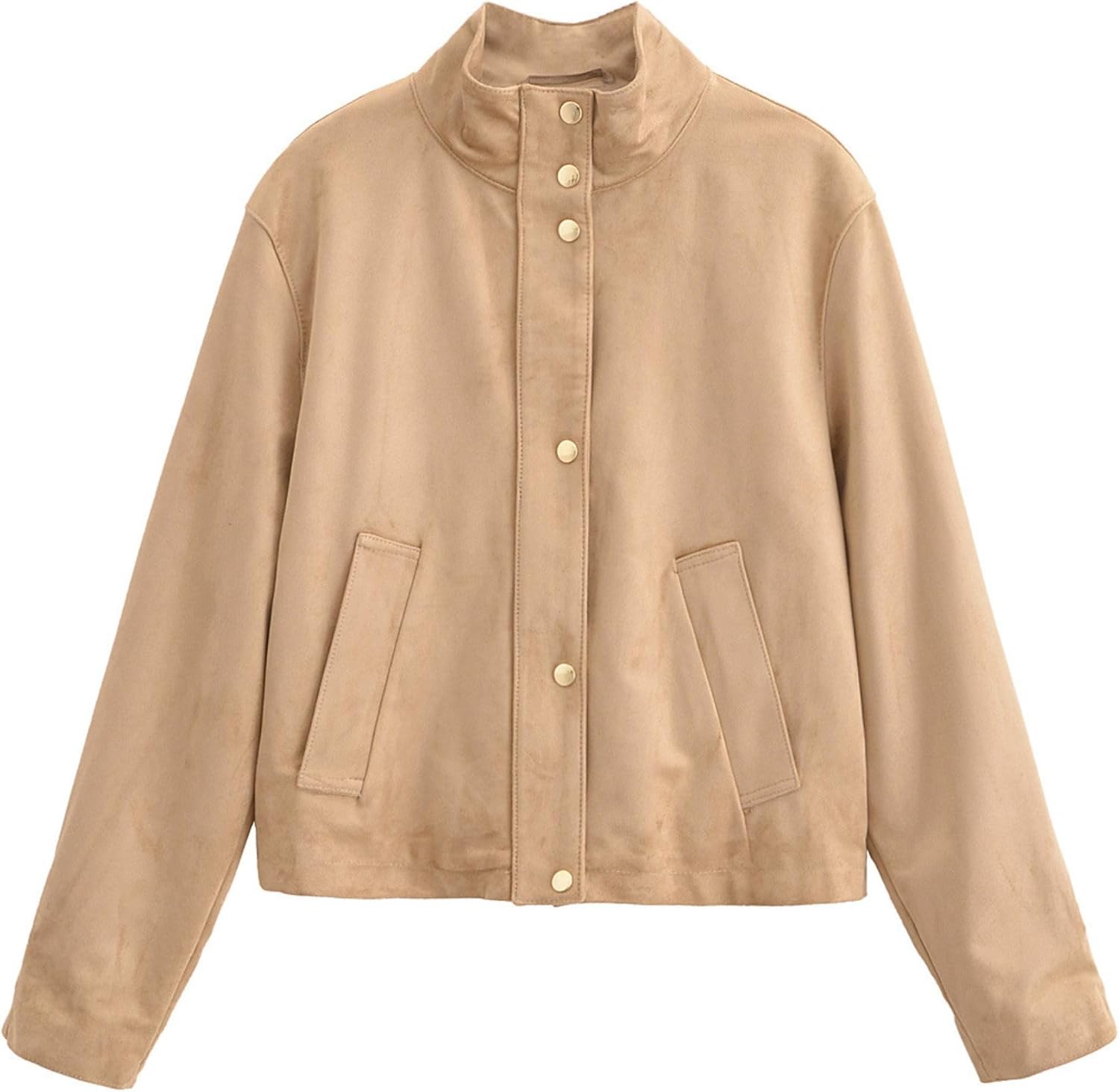 Xunger Women's Casual Faux Suede Jacket High Neck Utility Button Front Coat Streetwear Outerwear with Pockets