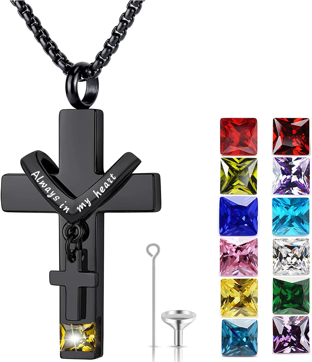 YOUFENG Birthstones Urn Necklaces for Ashes Cross Cremation Pendant Urns for Human Ashes Memorial Keepsake Locket Jewelry