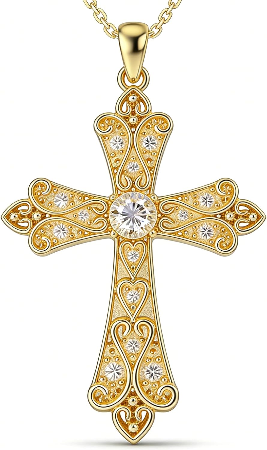 Cross Necklace for Women - Sterling Silver 5A Zirconia Cross Pendant Religious Jewelry Gifts for Women on Birthday Anniversary Christmas for Wife Girlfriend Her