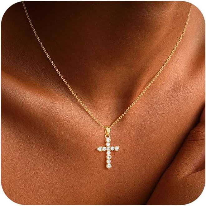 Cross Necklace For Women,14K Gold Silver Plated Small Dainty Colorful Cubic Zirconia Cross Pendant Choker Necklaces For Women,Easter Jewelry Gifts