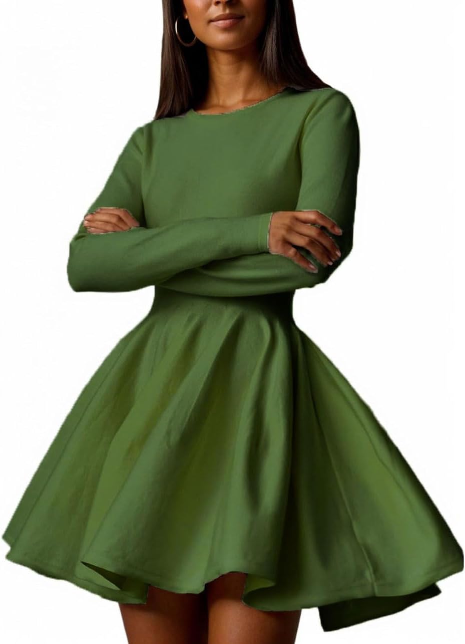CHARTOU Women Basic Sweater Dress Long Sleeve Pleated Flared Knitted Short Dresses