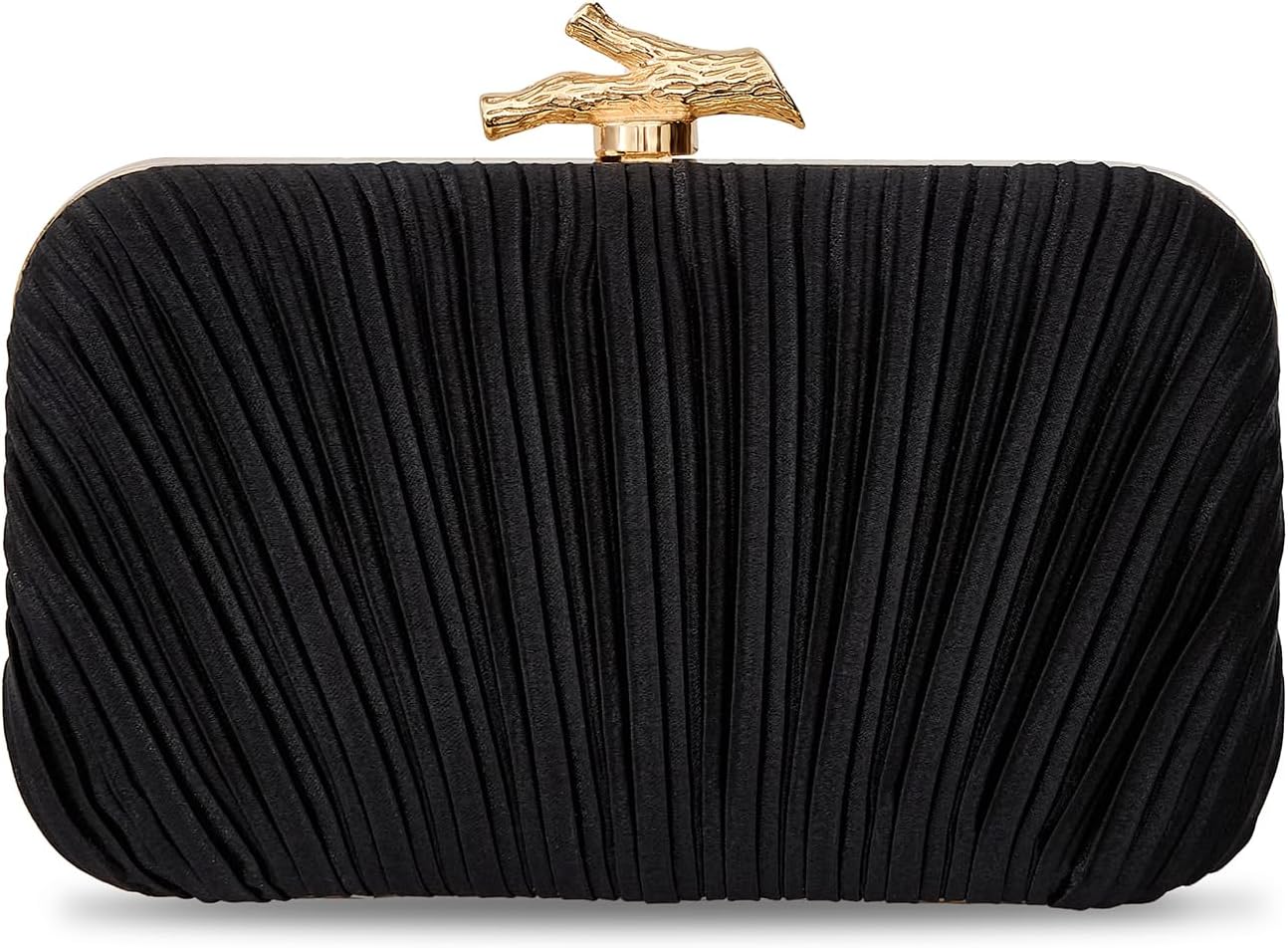 Women Elegant Clutch Purses Satin Pleated Evening Structured Handbag Metallic PU Fashion Bag Woven Classic Box Bag