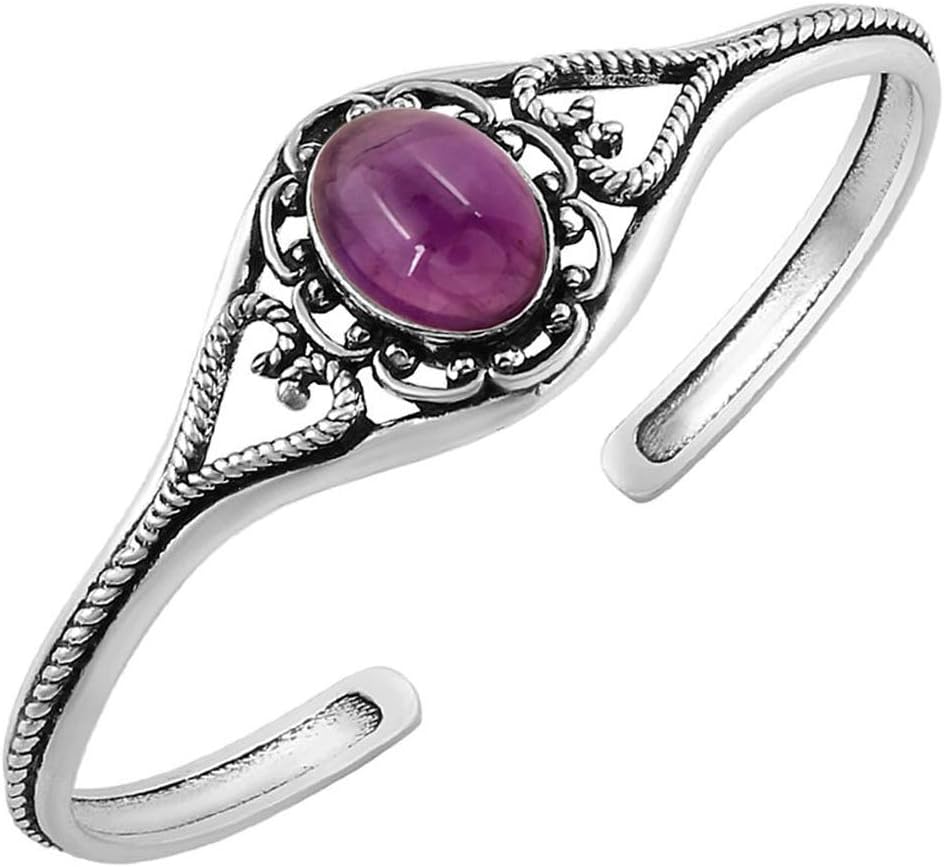 Natural & Synthetic Gemstone Cuff Bangle Bracelets for Women – Handmade 925 Silver Plated Birthstone Jewelry Adjustable Size for Perfect Fit – Gift for Birthdays, Anniversaries, Wedding, New Year