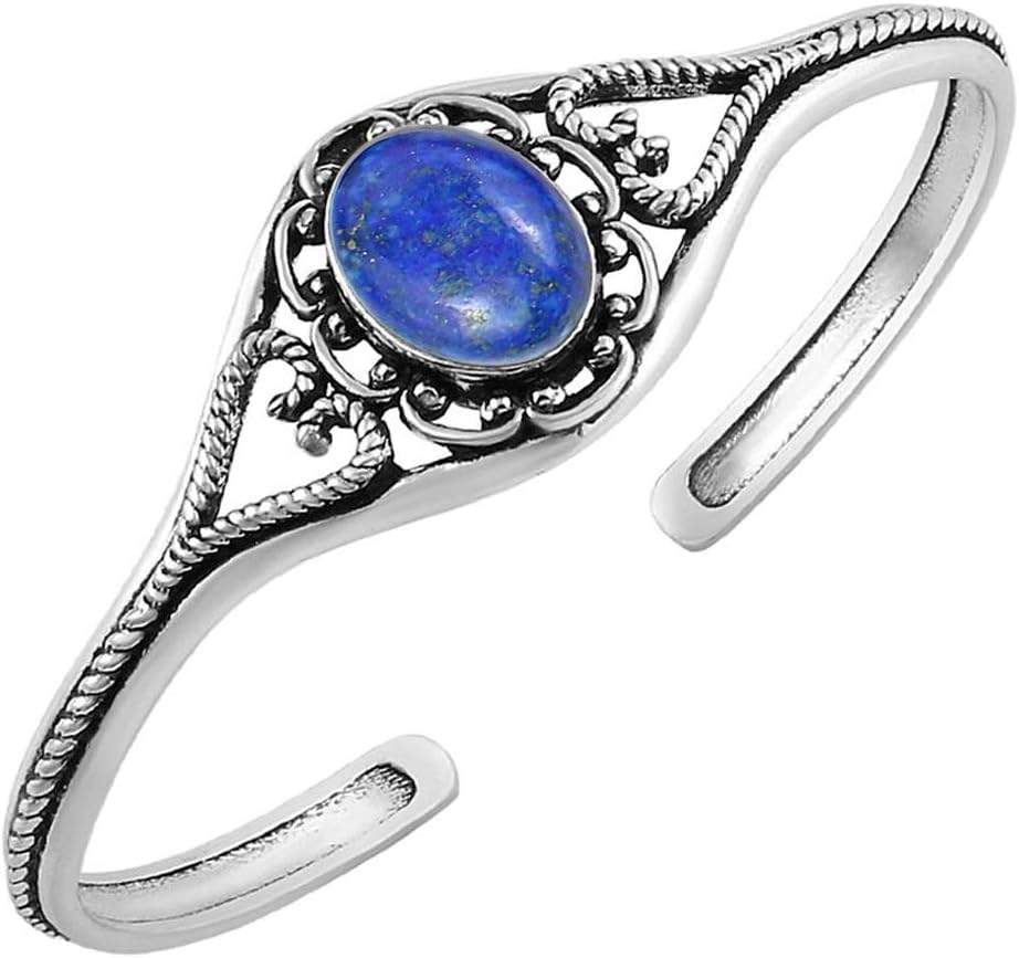 Natural & Synthetic Gemstone Cuff Bangle Bracelets for Women – Handmade 925 Silver Plated Birthstone Jewelry Adjustable Size for Perfect Fit – Gift for Birthdays, Anniversaries, Wedding, New Year