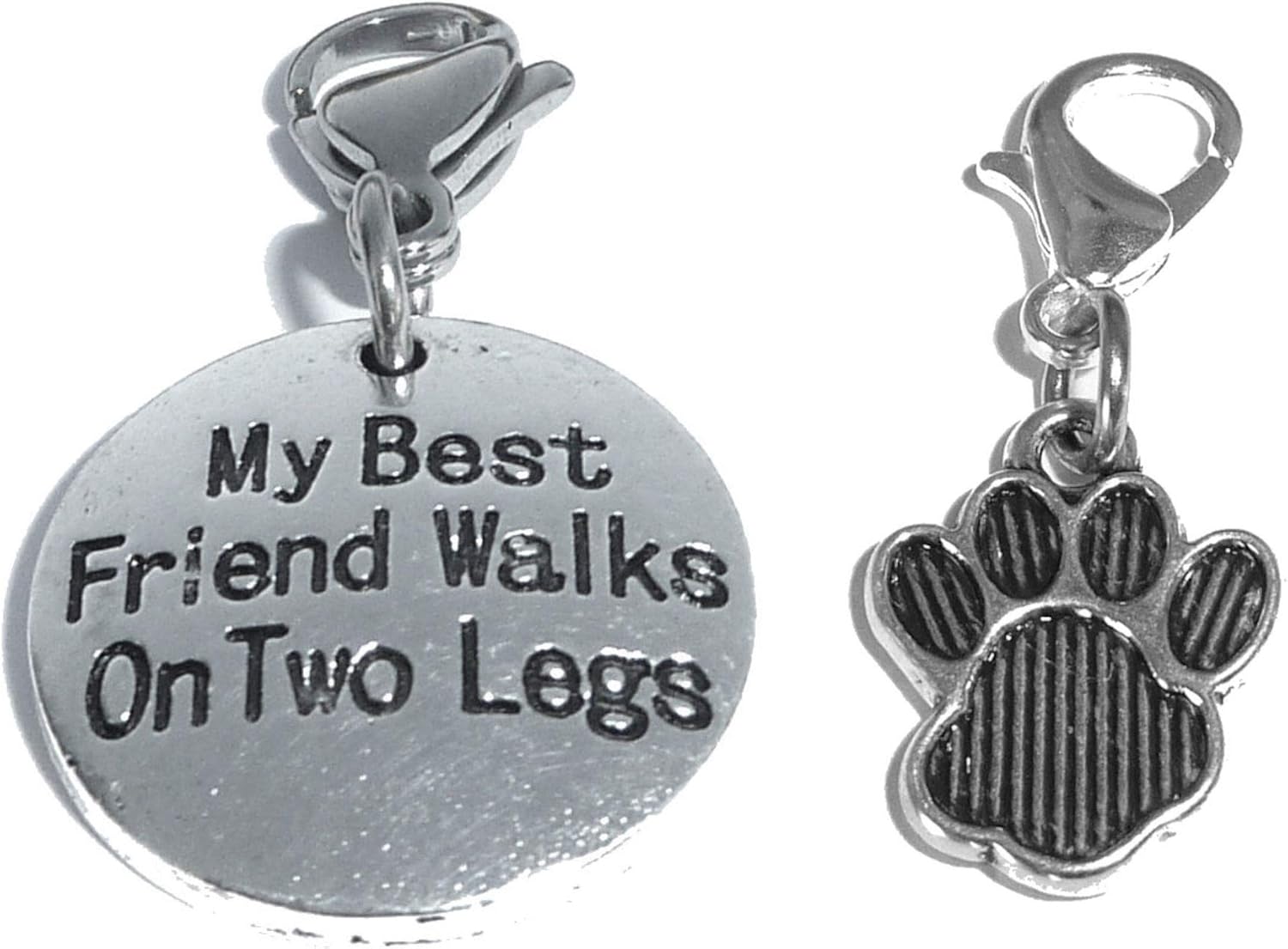 Hidden Hollow Beads Clip On Charm, Bag, Purse, Handbag, Message, Keychain, Zipper Pull, Bracelets, Necklaces, Jewelry (Pet Charm - My Best Friend Walks On Two Legs)