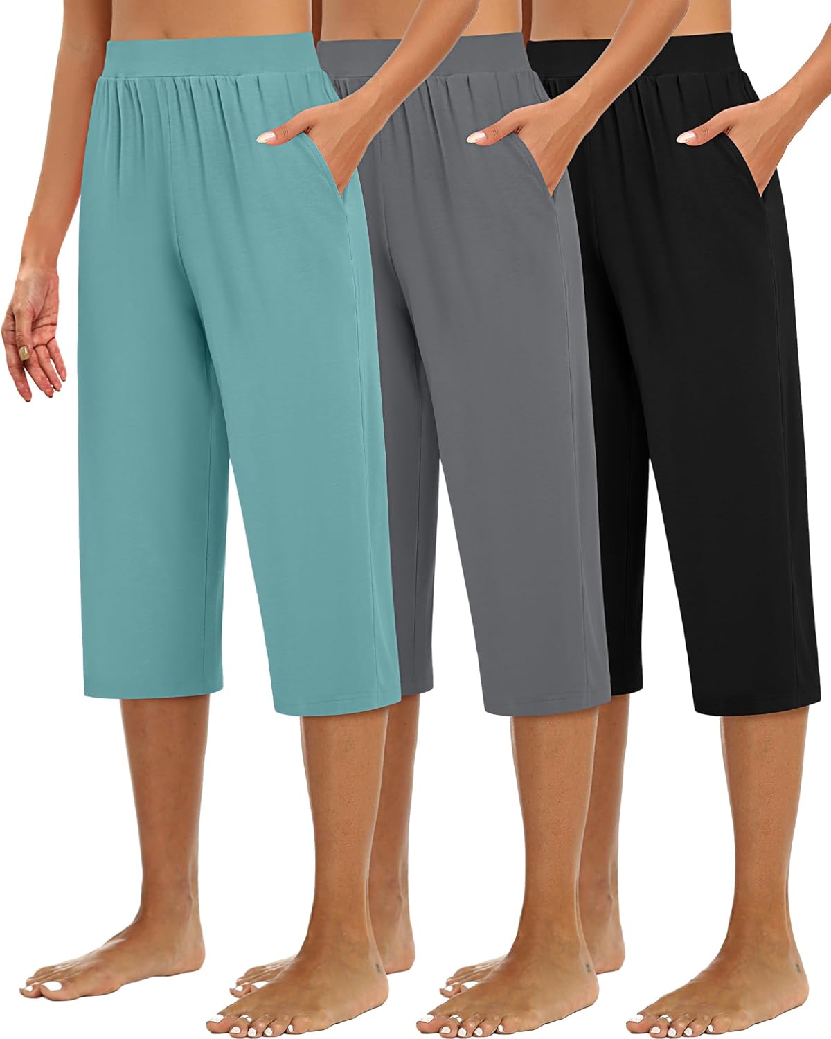 JULGIRL 3 Pack Capri Pants for Women Loose Lounge Cropped Sweatpants Joggers Yoga Casual Workout Pants with Pockets