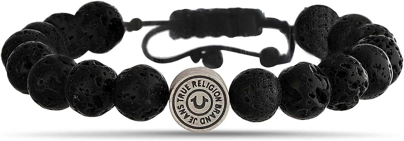 True Religion 9mm Black Bead Horseshoe 11 Inch Long Adjustable Bracelet for Men Stainless Steel