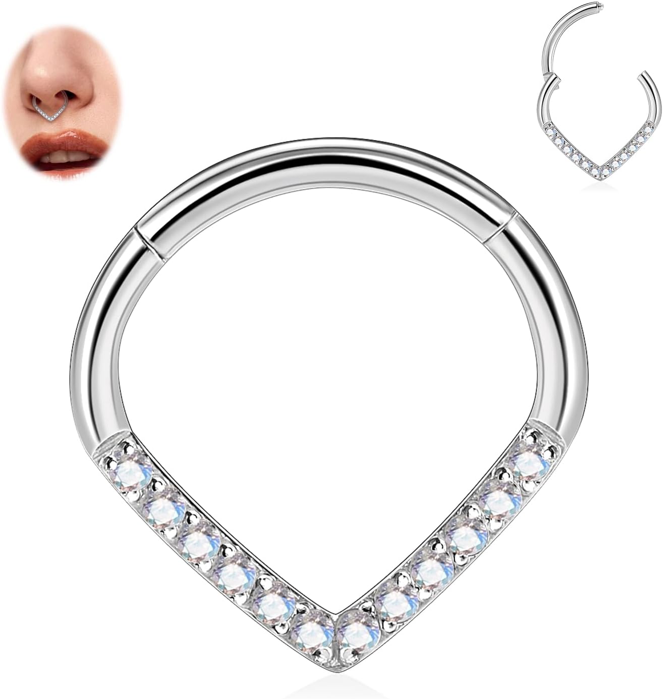 FUNLMO 16G Septum Ring Teardrop Septum Jewelry Daith Helix Tragus Rook Piercing Jewelry CZ Nose Rings Hoops Cartilage Earring 316L Surgical Steel
