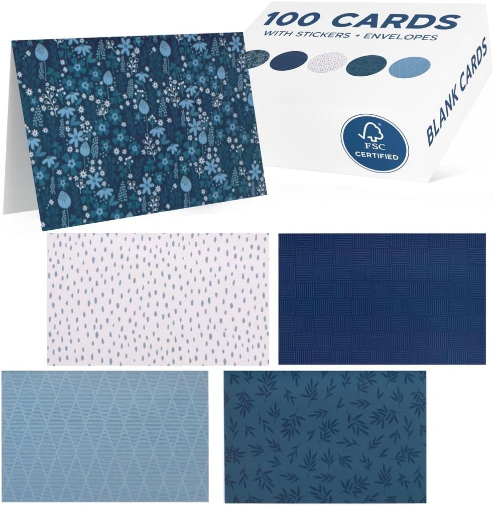 VNS Creations 100 Pack Blank Cards and Envelopes 4x6 - Bulk Blank Greeting Cards with Envelopes & Stickers Inside for All Occasions, Cute Colored Notecards Stationery Set, Assorted Colors Note - Navy