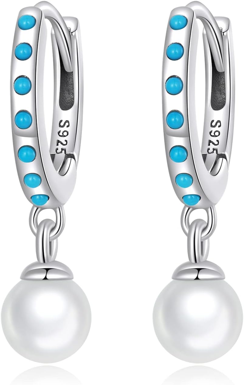 VIFE 925 Sterling Silver Star Ear Cuff Earrings Turquoise Pearl Dangle Drop Earrings Hoop Earrings for Women Jewelry Gift