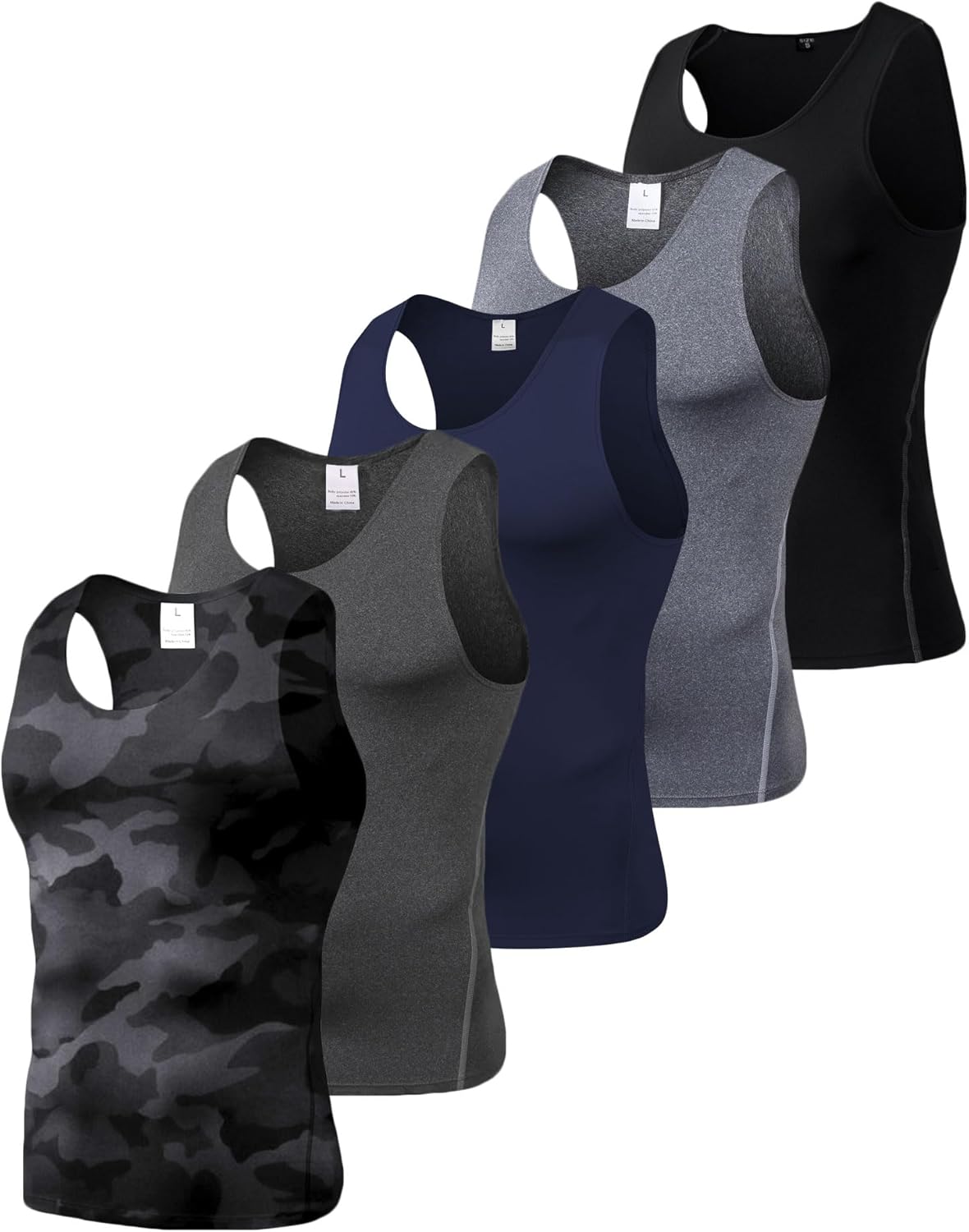 LANBAOSI 5 Pack Sleeveless Compression Shirt Men Running Tank Top Gym Athletic Workout Basketball Baselayer Undershirts