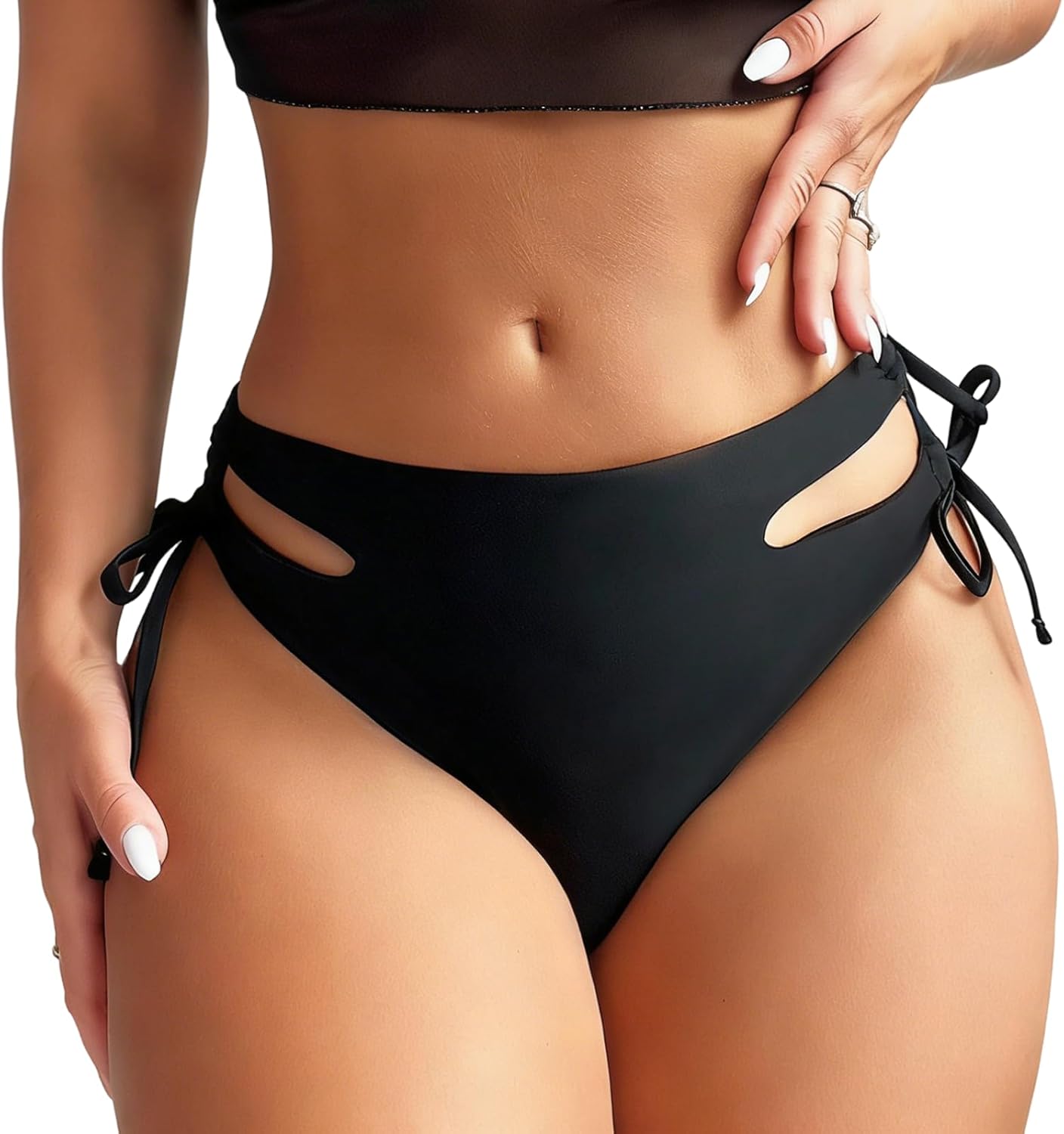 Sexybody Women High Waisted Bikini Bottoms Cheeky High Leg Cut Out Side Tie Sexy Ruched Bathing Suit Swimsuit Swim Bottoms