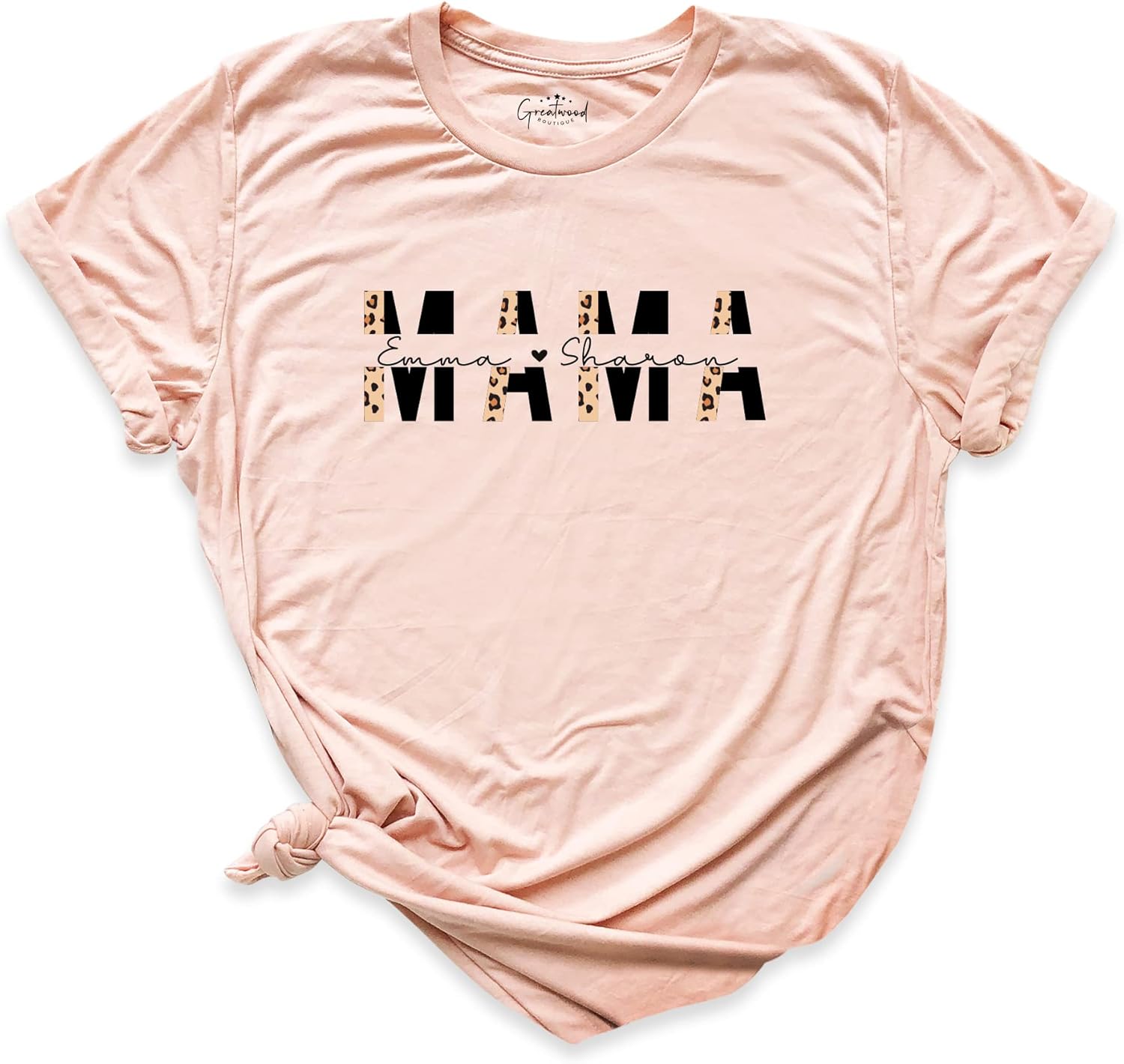 Custom Mama Gift Shirt With Kids Names, Leopard Print Personalized Mom Shirt, Mother's Day Shirt, Custom Kid's Names Mama Shirt, Gift For Mama