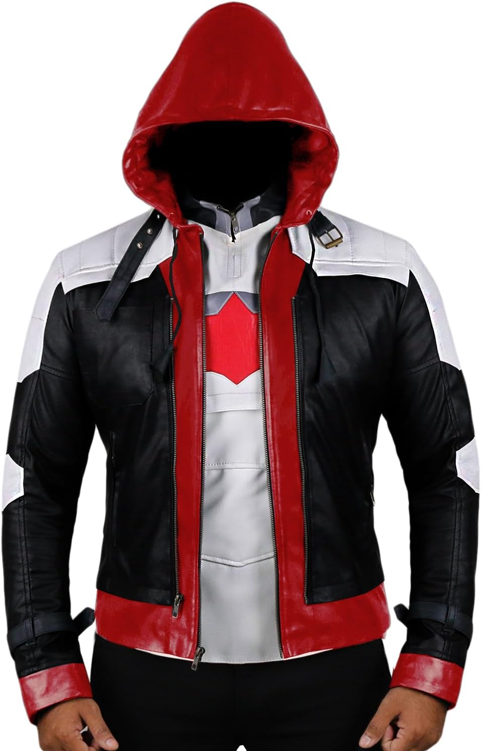 Replica Style Red Hood Men's Faux Leather Jacket + Vest
