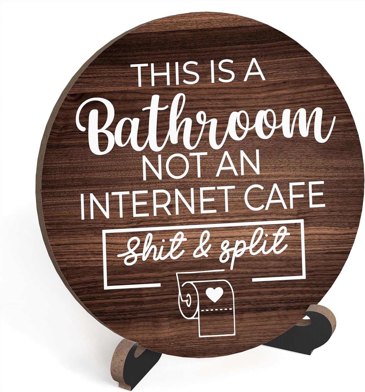 Rustic Bathroom Decor - Funny Round Sign With Stand 'This Is A Bathroom Not An Internet Cafe' - Farmhouse Quote for Toilet, Restroom, Washroom - Home Decor Gifts, A06