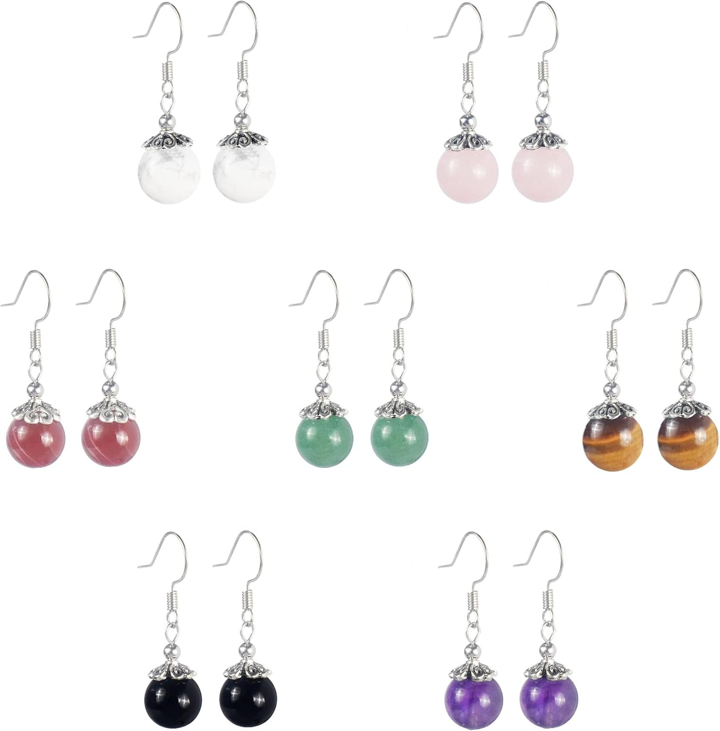 Genuine Stone Beaded Earrings 7 Pairs Dangle Earrings Chakra Earring Healing Crystal Lightweight Colorful Gemstone Earrings Gifts for Women Mom