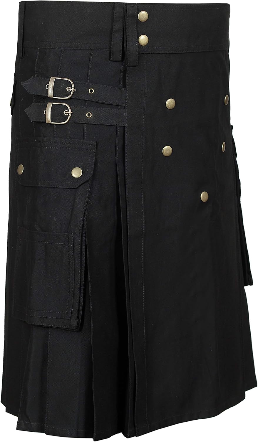 Scottish Designer Utility Kilts for Men Black Cotton Kilt Color & Size Options Available