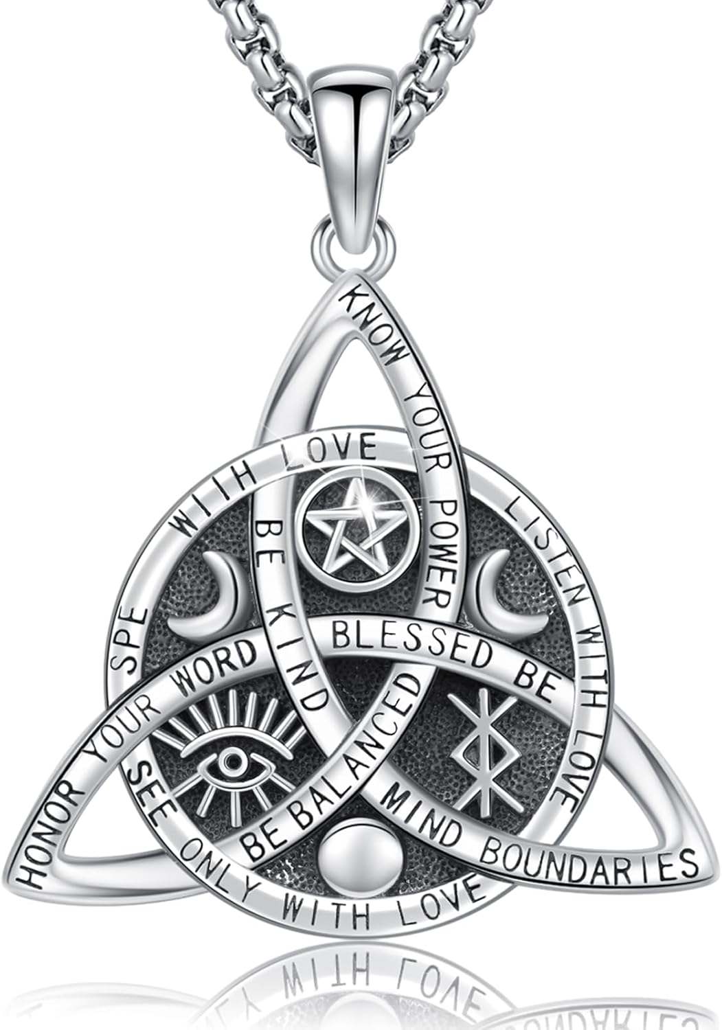 Wiccan Jewelry Celtic Knot Necklace 925 Sterling Silver Triple Goddess Triquetra Necklace Witchy Necklace for Women & Men pagan jewelry Nudo De Bruja Protection Amulet Necklace