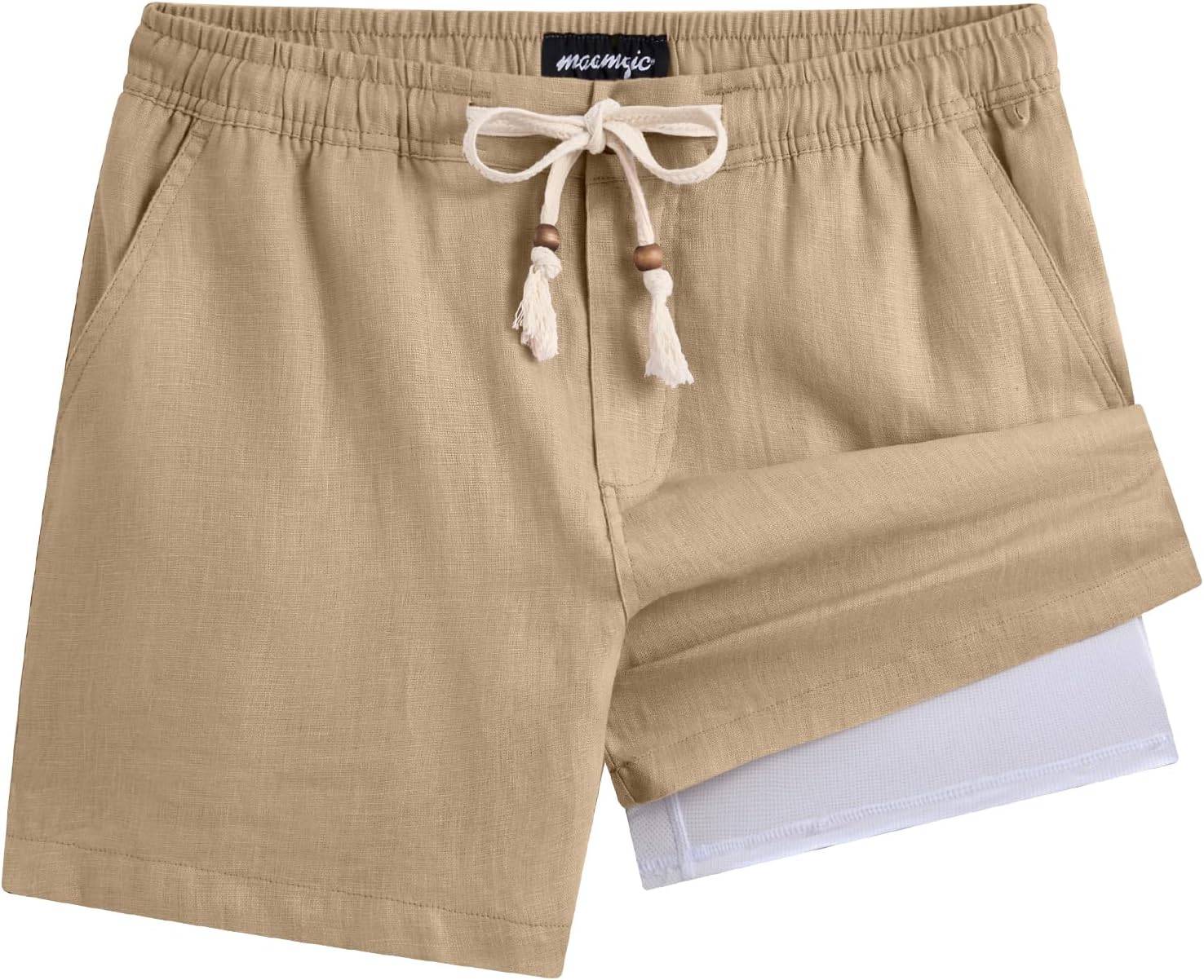 maamgic Mens Casual Linen Shorts 5/7 Inch Elastic Waist Drawstring Summer 2 in 1 Beach Short with Pockets
