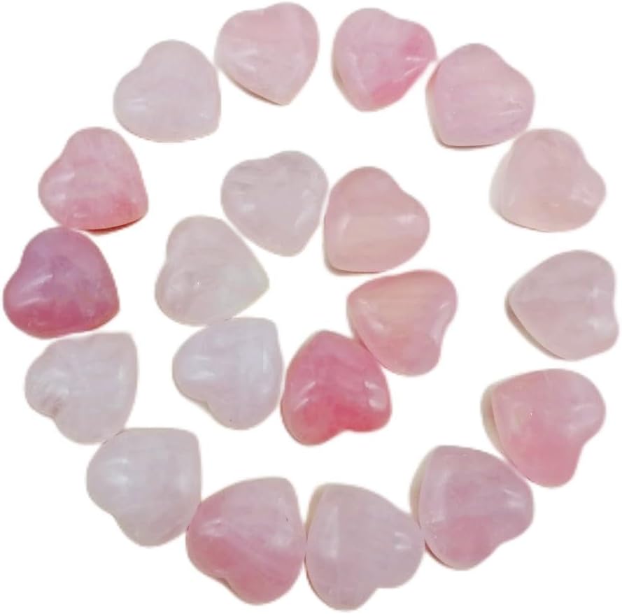 Rose Quartz Heart Shaped Crystals 1"(25mm) 20 Pcs Chakra Natural Gemstones Worry Stones Bulk for Anxiety Jewelry Making Home Decor