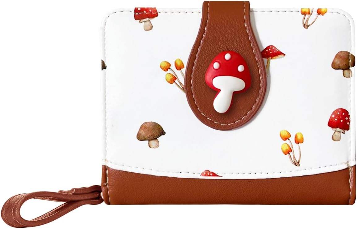 Cute Print Wallet Blueberry Strawberry Cherry Wallet with Credit Card Holder Zipper Coin Purse for Women Girls (MASHROOM)