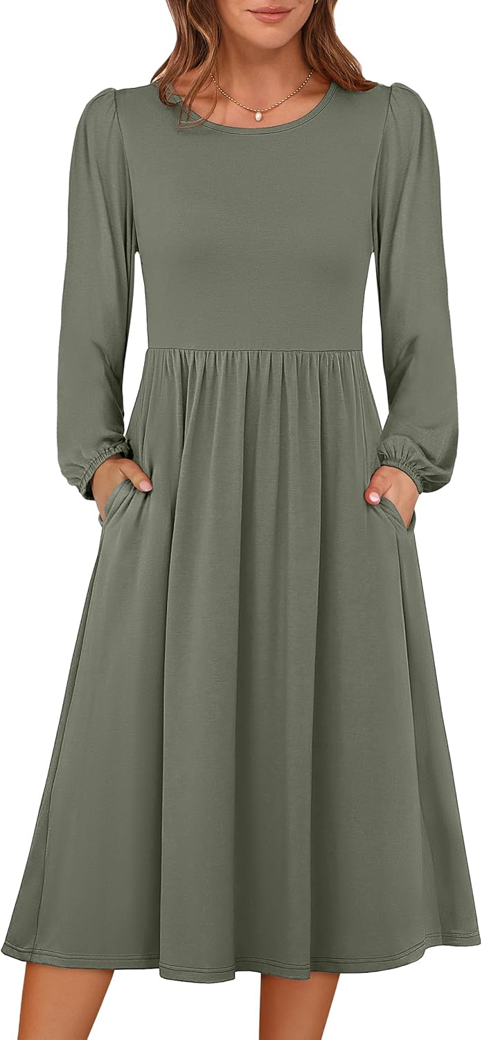 ANRABESS Women Long Sleeve Midi Dress Crewneck 2025 Fall Fashion Casual Flowy A-Line Long Dresses Vacation Outfit with Pocket