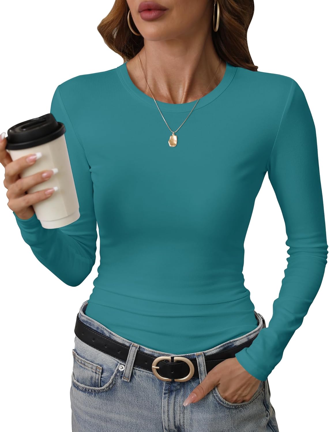 GEMBERA Womens' Crewneck Long Sleeve Slim Fitted Casual Top T-Shirts Stretchy Basic Shirt