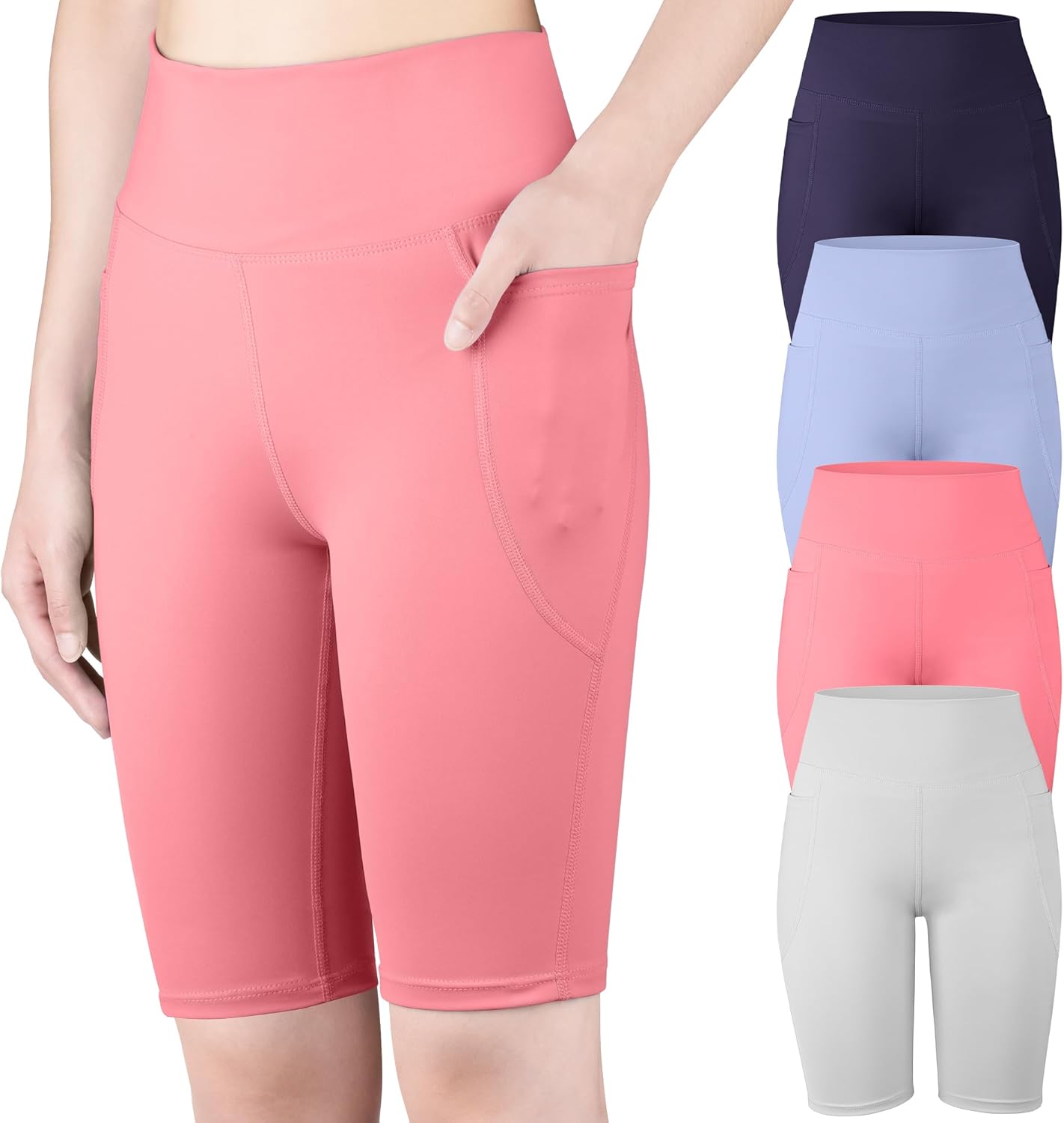 BIG ELEPHANT 4 Packs Girls' Athletic Bike Shorts, Dance Yoga Running Soccer Kids Compression Shorts with Pockets