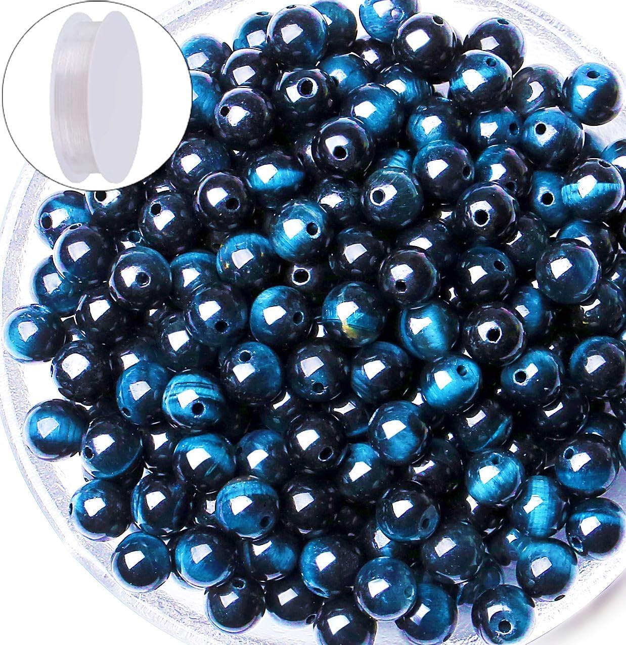 - [Basic Information] Specifications and attributes:8mm Sapphire Tiger Eye Beads.Natural Stone Beads Diameter: 8mm/0.31"; Gemstone Beads Hole Diameter:1.2mm/0.047". Quantity: 60PCS Crystal Beads.Material:Sapphire Tiger Eye .Exquisite QINJIEJIE gift boxes shipped together with stone beads. No need to purchase additional gift boxes.There are 1 strings inside, 1 string of 60PCS. It is suitable as a gift for crystal meditation beads lovers, crystal beginners and Jewelry craft lovers.