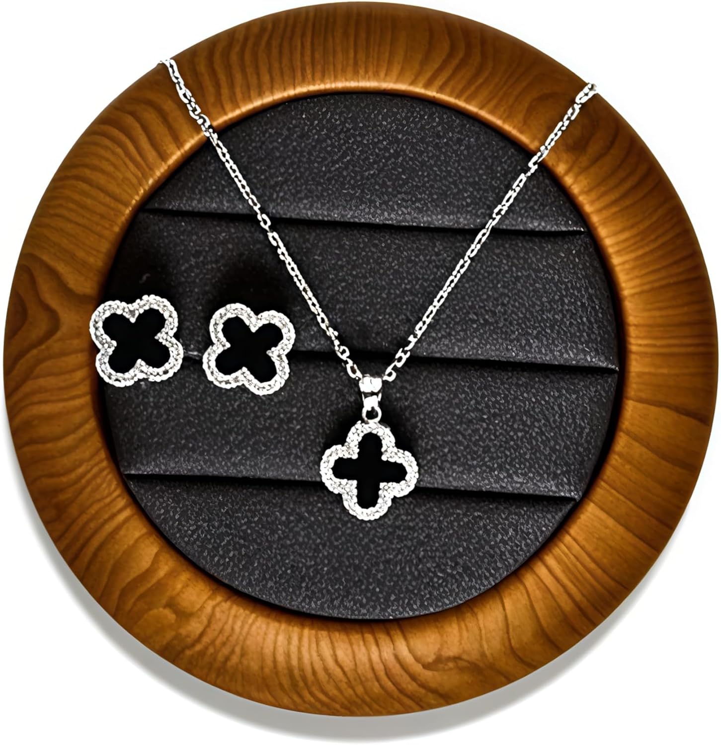 Lucky Grass Moissanite Silver Jewelry Set 2-Piece Necklace Earrings for Prom, Wedding, Party, Date Night - Hypoallergenic Gift for Women & Teens