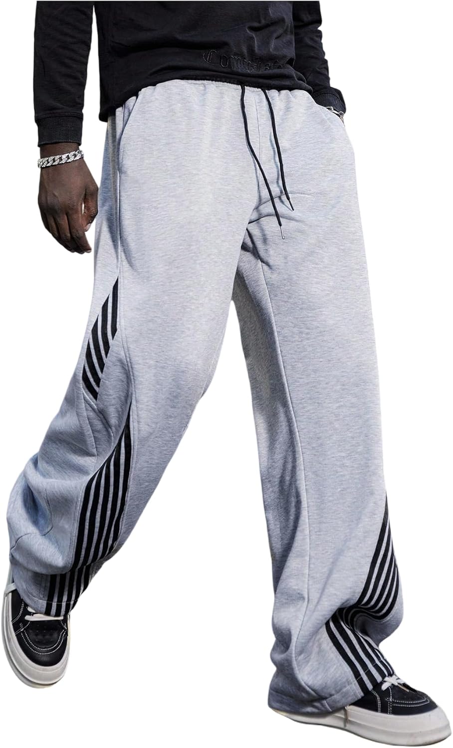 SOLY HUX Men's Striped Wide Leg Sweatpants Drawstring Elastic Waist Baggy Casual Pants with Pockets