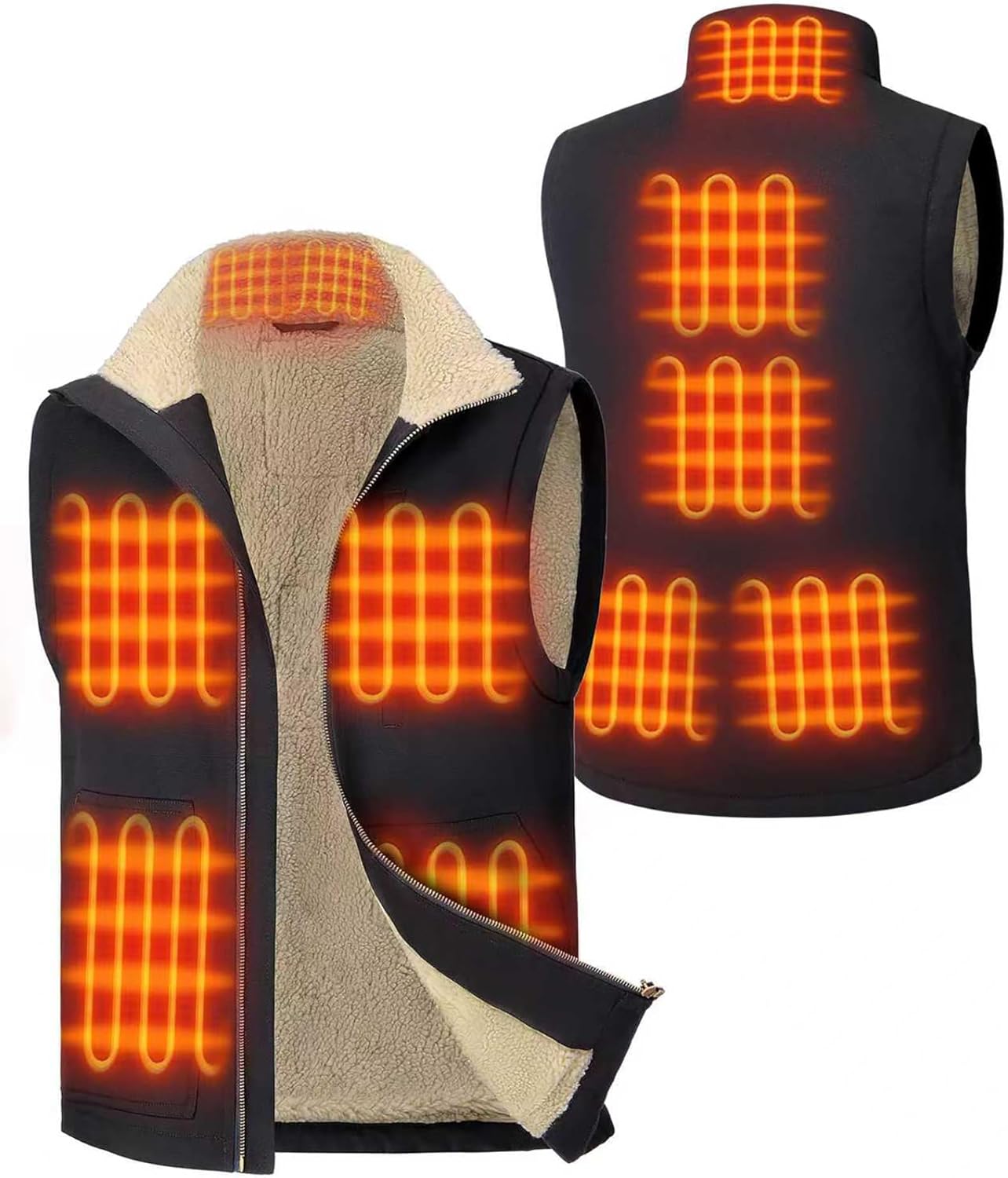 Canvas Heated Vest for Men with 16000mAh 7.4V Baterry Pack, 9 Zones Mens Heated Vest, Sherpa Lined