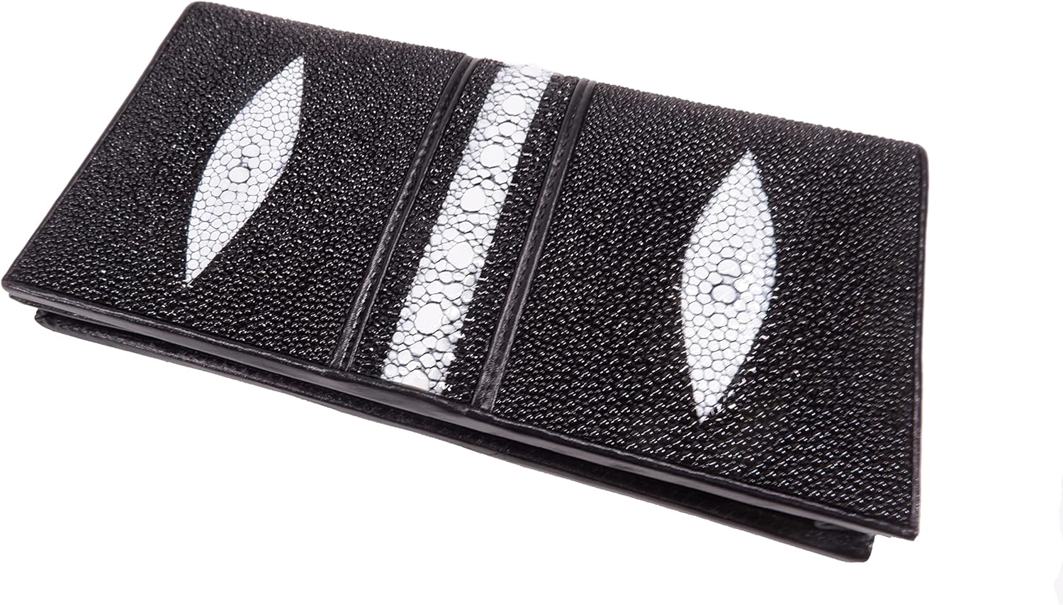Genuine Row Diamond Stingray Skin Checkbook Wallet Clutch Purse (Black)