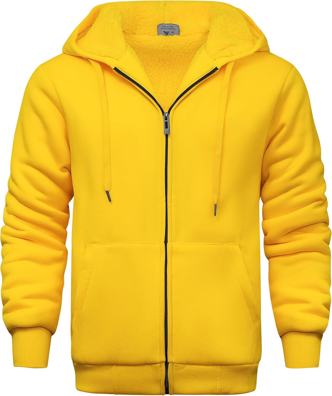 Butygity Sherpa Lined Hoodies for Men Heavyweight Full Zip Up Sweatshirt Thick Fleece Jackets Winter Warm Coats
