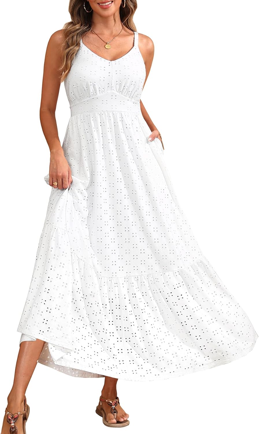 Plus Size Summer Dresses Maxi - Eyelet Sun Boho Beach Casual Long Sundress with Pockets