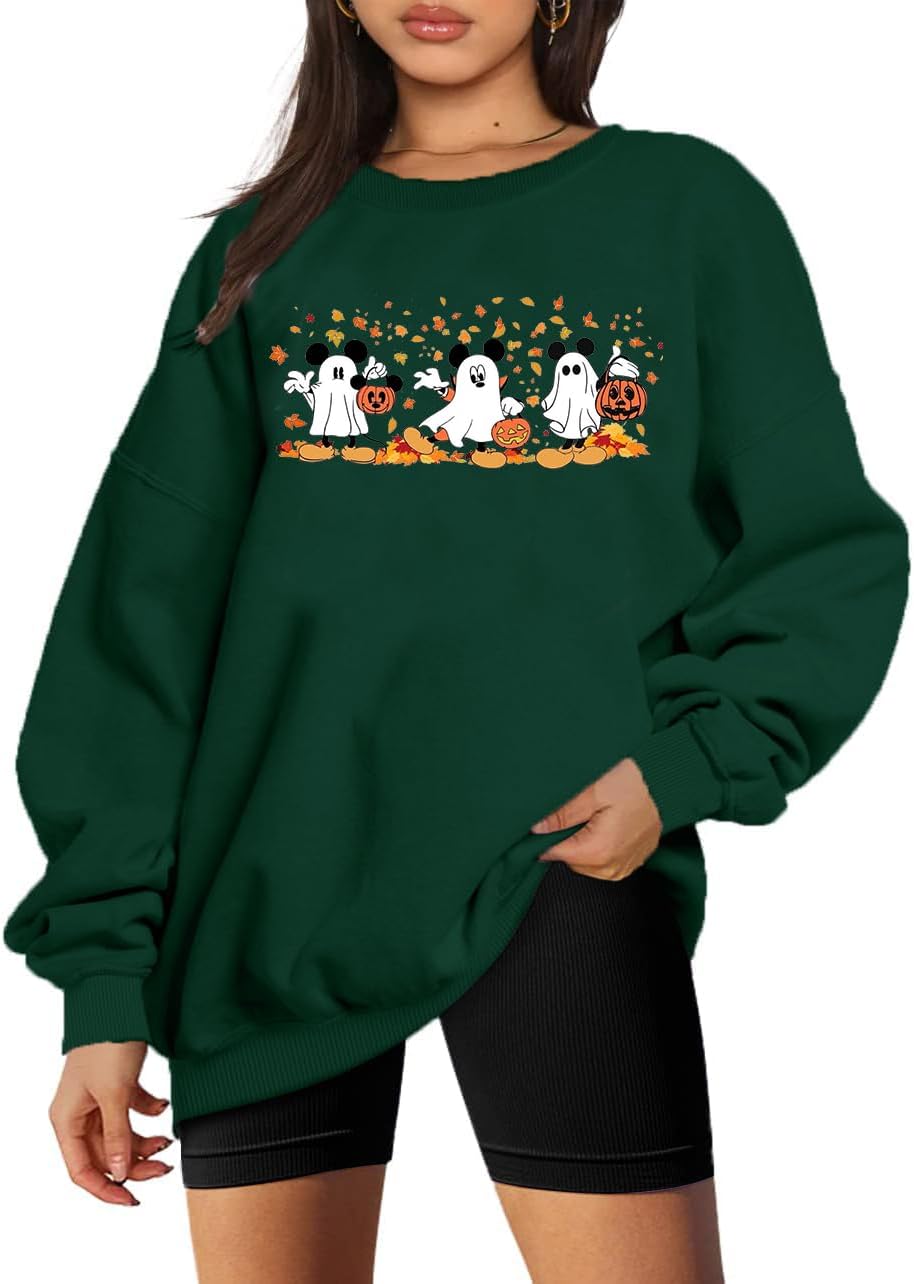 Halloween Sweatshirt Women Cute Ghost Sweatshirts Oversized Spooky Season Pullover Tops Casual Long Sleeve Tee Tops