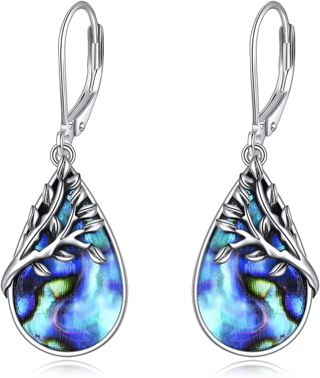 AXELUNA Tree of Life Earrings Sterling Silver Teardrop Abalone Shell Dangle Leverback Earringgs Gifts for Women Girls