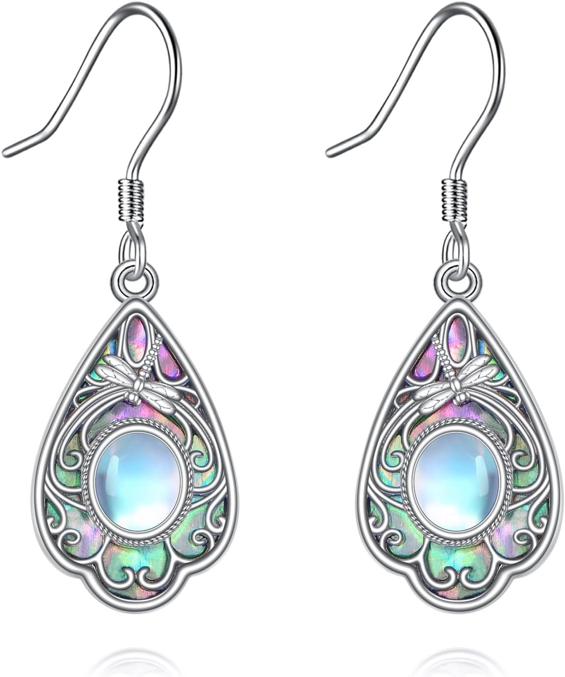925 Sterling Silver Dragonfly Abalone Shell Earrings for Women Hypoallergenic Gift for Her