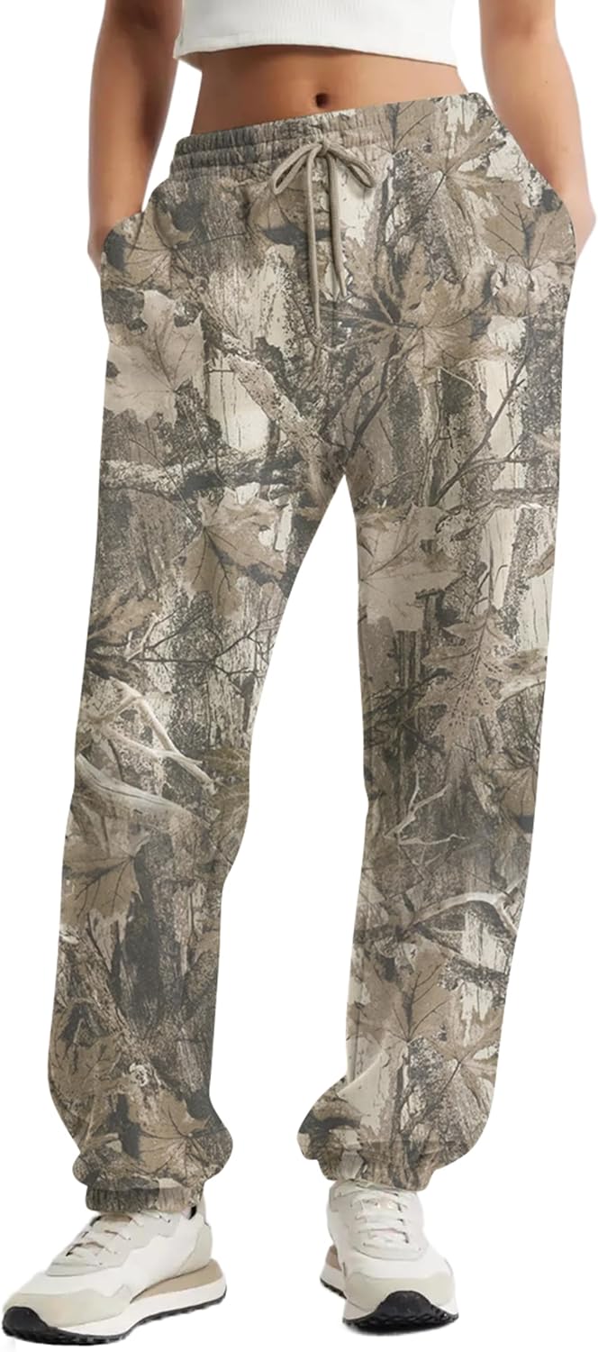 Casual Camo Sweatpants for Women Baggy Fleece Y2K Camouflage High Waisted Joggers Pants with Pockets Streetwear